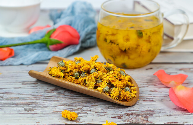 在热水中加入云台冰菊,饭后饮用一杯,更利于元素吸收。